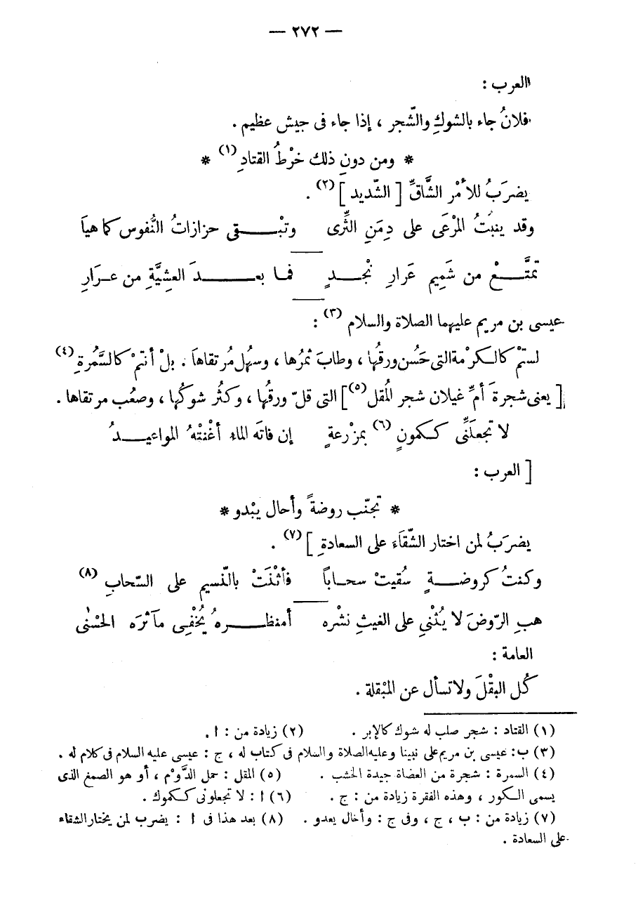 عيسى بن مريم عليهما الصلاة والسلام: لستم كالكرمة التي حسن ورقها، وطاب ثمرها، وسهل مرتقاها. بل أنتم كالسّمرة يعني شجرة أم غيلان شجر المقل التي قلّ ورقها، وكثر شوكها، وصعب مرتقاها.
