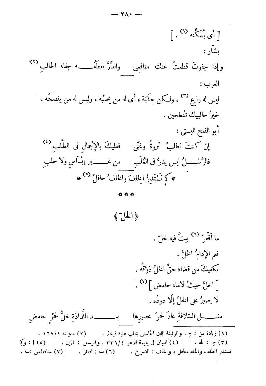 ما أقفر بيتٌ فيه خلّ. نعم الإدام الخلّ. يكفيك من قضاء حق الخلّ ذوقه. الخلّ حيث لا ماء حامض. لا يصبر على الخلّ إلا دوده.