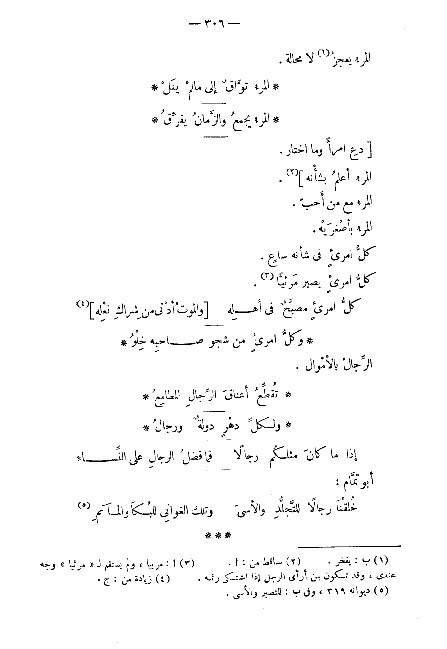 دع امرأً وما اختار. المرء أعلم بشأنه. المرء مع من أحب. المرء بأصغريه. كل امرىءٍ في شأنه ساعٍ. كل امرىءٍ يصير مرئياً.
