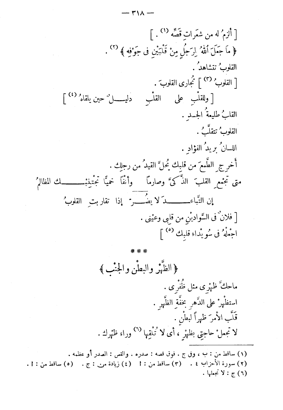 القلب طليعة الجسد. القلوب تتقلب. اللسان بريد الفؤاد. أخرج الطمع من قلبك يحل القيد من رجلك.