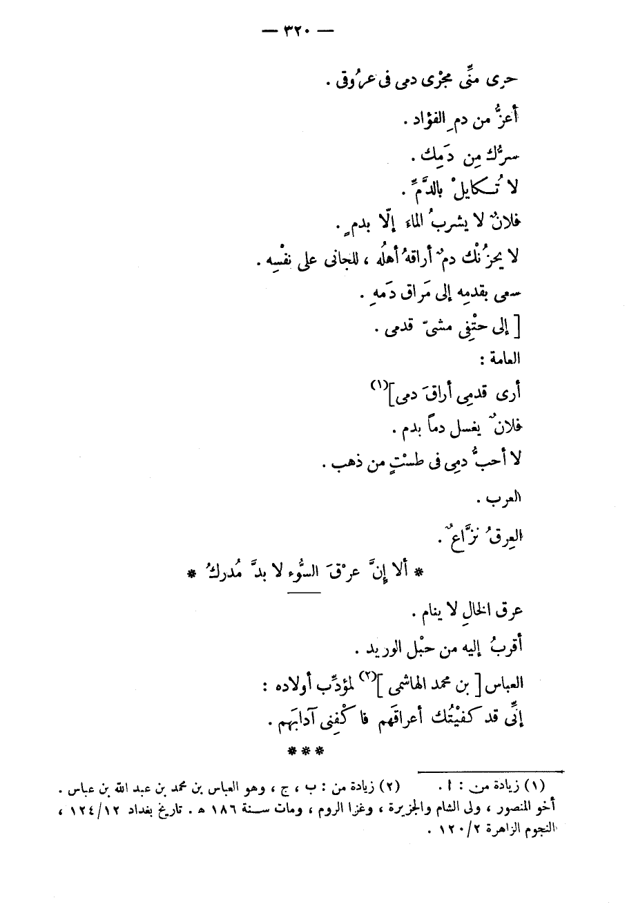 عرق الخال لا ينام. أقرب إليه من حبل الوريد. العباس بن محمد الهاشمي لمؤدب أولاده: إني قد كفيتك أعراقهم فاكفني آدابهم.