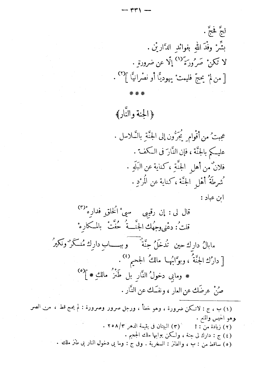عجبت من أقوامٍ يجرون إلى الجنة بالسلاسل. عليكم بالجنة، فإن النار في الكف. فلانٌ من أهل الجنة، كناية عن البله. شرطة أهل الجنة، كناية عن المرد. ابن عباد: