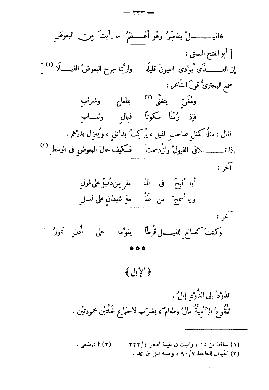 إن القذى يؤذي العيون قليله ... ولربّما جرح البعوض الفيلا