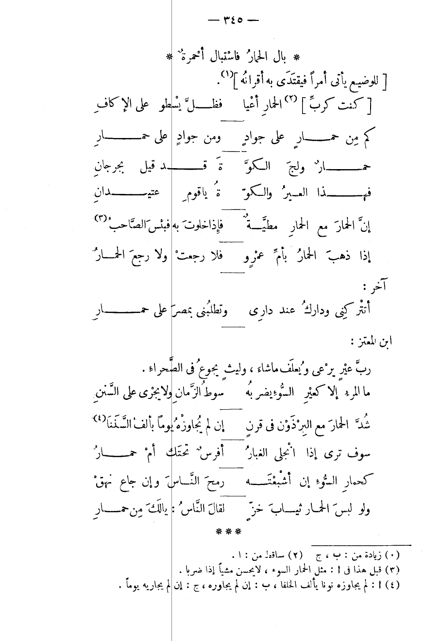 ابن المعتز: ربّ عيرٍ يرعى ويعلف ما شاء، وليثٍ يجوع في الصحراء.