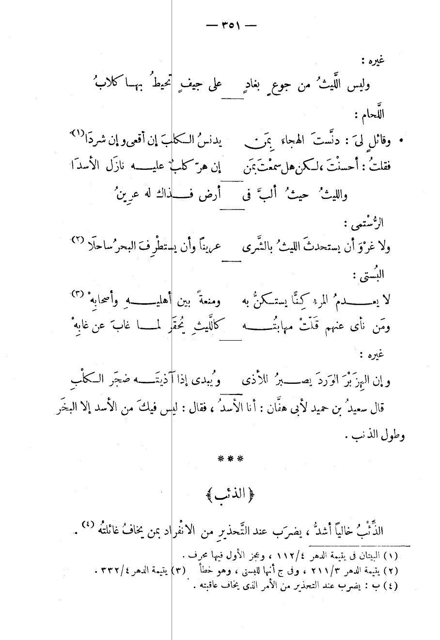 قال سعيد بن حميد لبي هفان: أنا الأسد، فقال: ليس فيك من الأسد إلا البخر وطول الذنب.