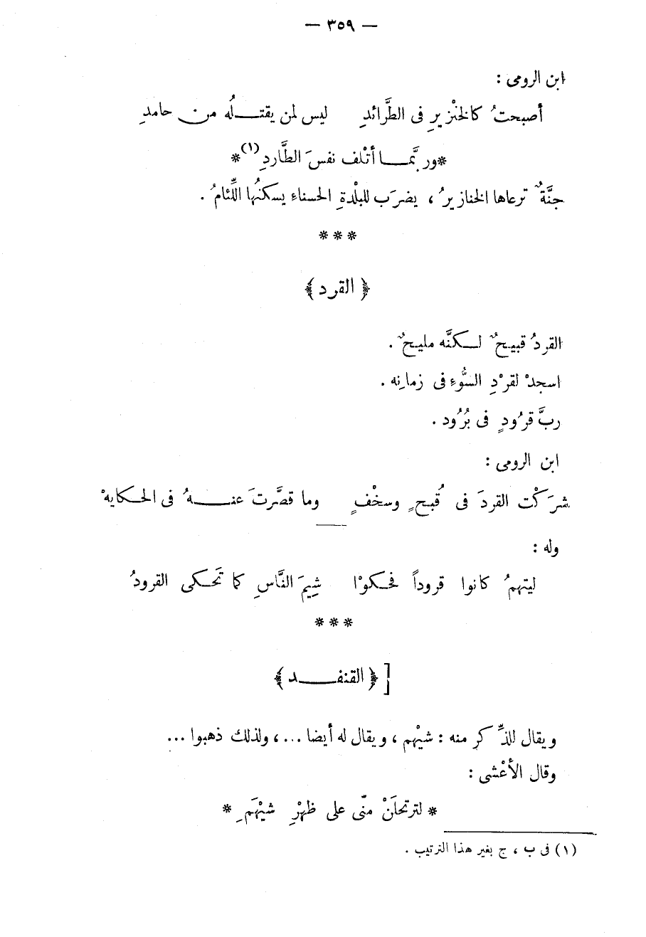 القرد قبيحٌ لكنه مليحٌ. اسجد لقرد السوء في زمانه. ربّ قرودٍ في برود. ابن الرومي: