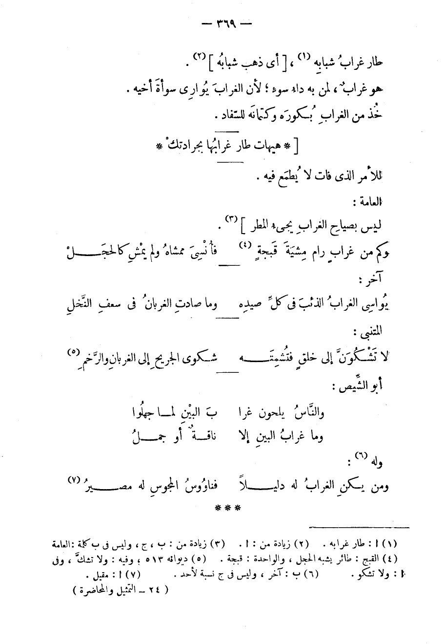 طار غراب شبابه، أي ذهب شبابه. هو غرابٌ، لمن به داء سوءٍ؛ لأن الغراب يواري سوأة أخيه. خذ من الغراب بكوره وكتمانه للسفاد.