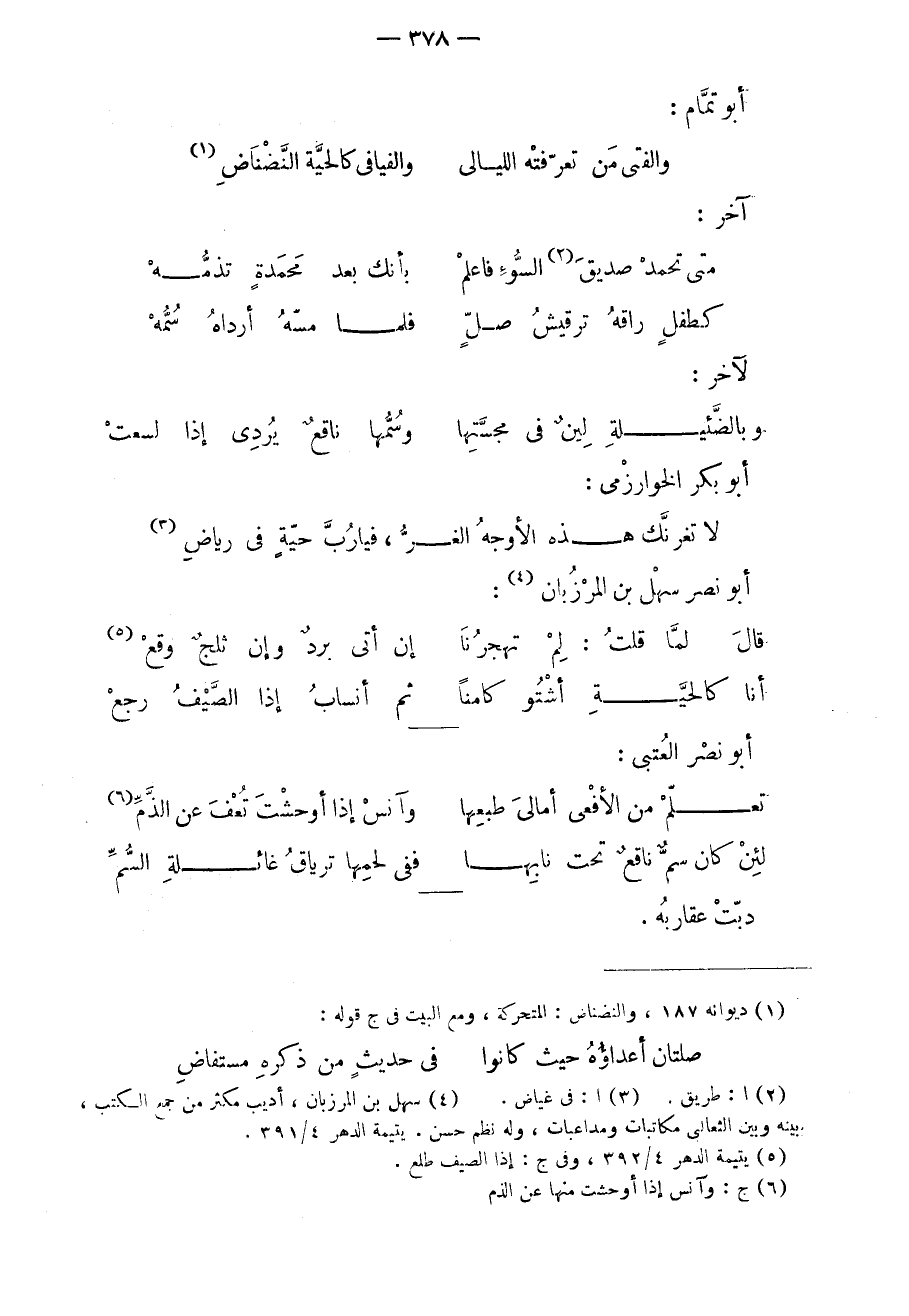أبو بكر الخوارزمي: لا تغرنّك هذه الأوجه الغرّ، فيا ربّ حيةٍ في رياض. أبو نصر سهل بن المرزبان: