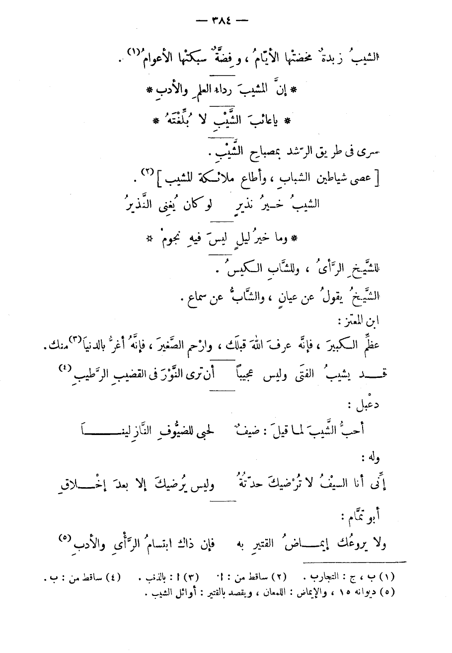 سرى في طريق الرشد بمصباح الشيب. عصى شياطين الشباب، وأطاع ملائكة المشيب.