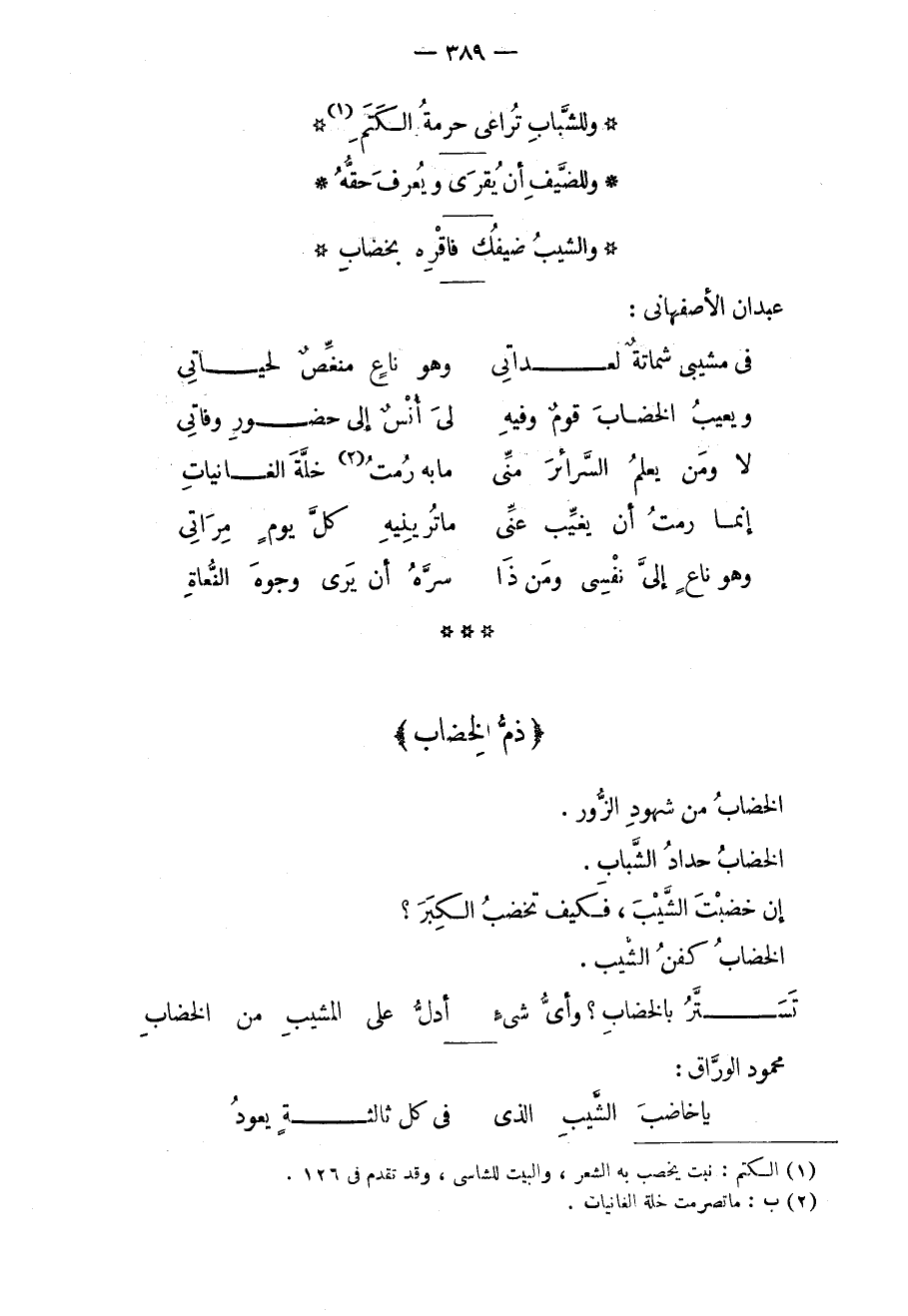 ويعيب الخضاب قومٌ وفيه ... لي أنسٌ إلى حضور وفاتي