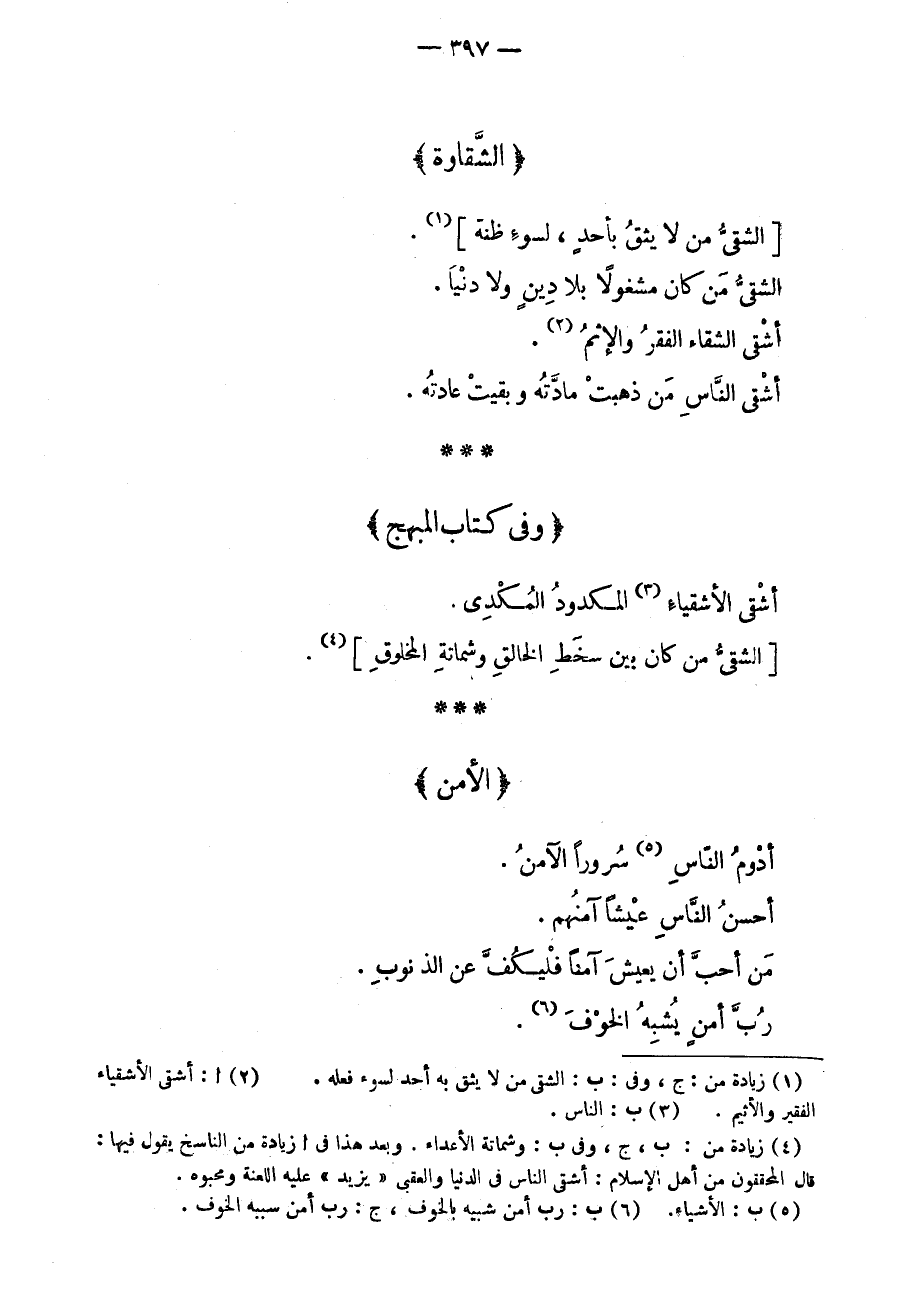 أدوم الناس سروراً الآمن. أحسن الناس عيشاً آمنهم. من أحب أن يعيش آمناً فليكف عن الذنوب. ربّ أمنٍ يشبه