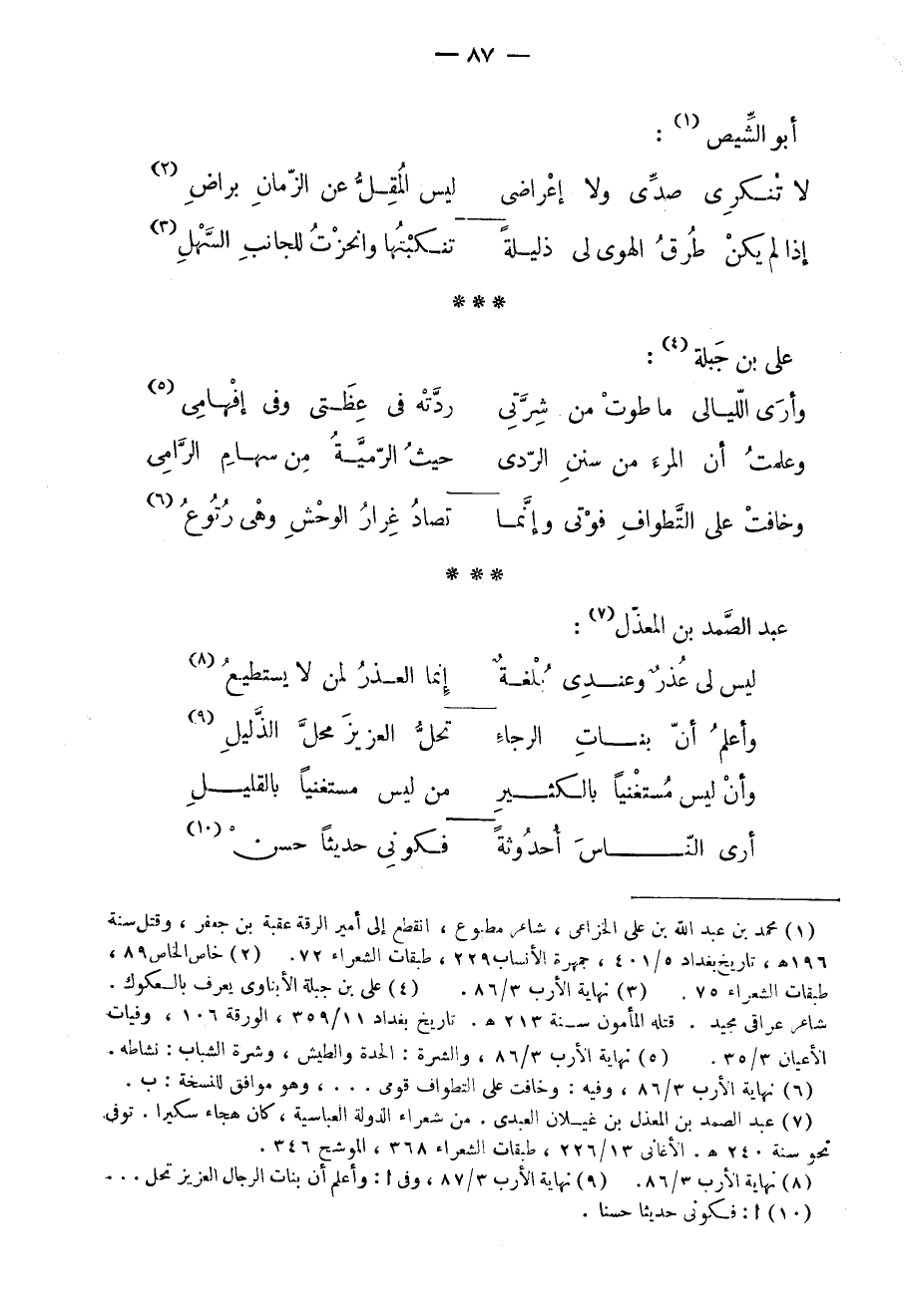 لا تنكري صدّي ولا إعراضي ... ليس المقلّ عن الزّمان براض
