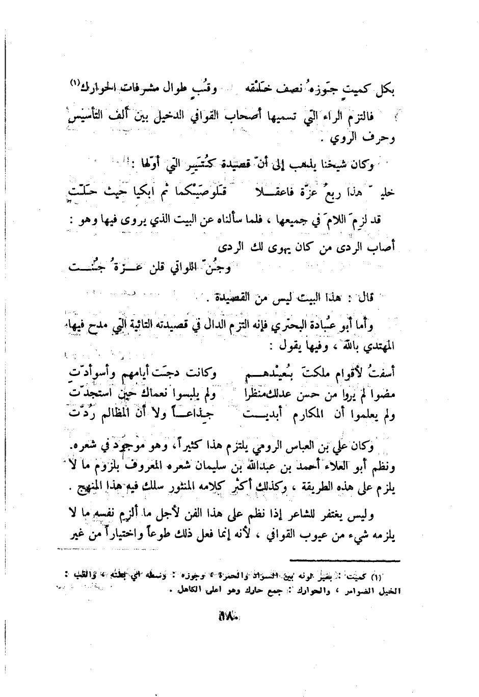 وكان علي بن العباس الرومي: يلتزم هذا كثيراً وهو موجود في شعره ونظم أبو العلاء أحمد بن عبيد الله بن سليمان شعره - المعروف بلزوم ما لا يلزم - على هذه الطريقة وكذلك أكثر كلامه المنثور سلك فيه هذا المنهج.