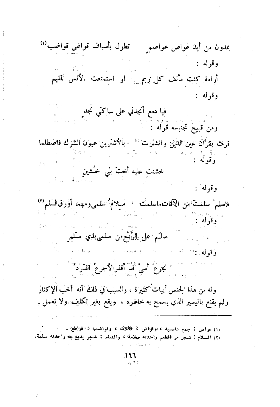 وله من هذا الجنس أبيات كثير والسبب في ذلك أنه أحب الإكثار ولم يقنع باليسير الذي يسمح به خاطره ويقع بغير تكلف ولا تعمل.