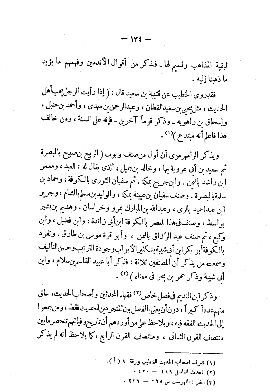 وذكر ابن النديم في فصل خاص (¬3) فقهاء المحدثين وأصحاب الحديث وساق منهم عددًا، دون أن يعنى بالفصل بين المتجردين للحديث فقط، ومن جمعوا إلى الحديث الفقه فيه، ويلاحظ على من أوردهم أن تاريخ وفياتهم تنحصر ما بين منتصف القرن الثاني، ومنتصف القرن الرابع، كما يلاحظ أنه لم يذكر