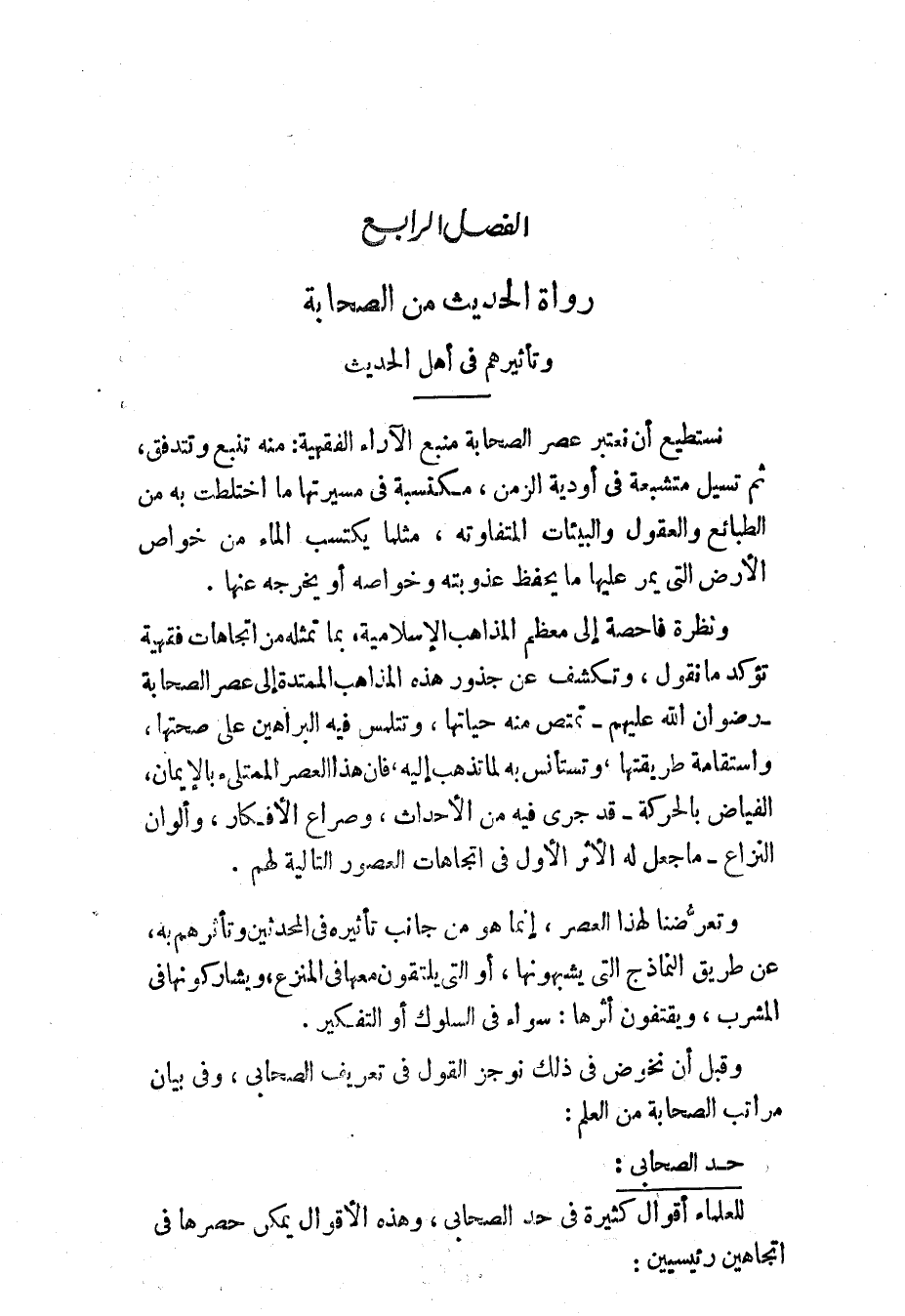 الفَصْلُ الرَّابِعُ: رُوَّاةُ الحَدِيثِ مِنَ الصَّحَابَةِ وَتَأْثِيرُهُمْ فِي أَهْلِ الحَدِيثِ: