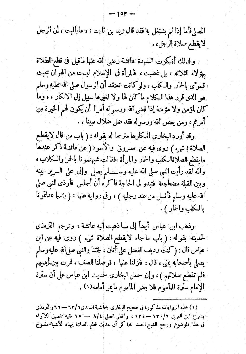 (¬1) هذه الروايات مذكورة في " صحيح البخاري بحاشية السندي ": 1/ 63، 66؛ و" الترمذي بشرح ابن العربي ": 2/ 130، 134؛ وانظر " المحلى ": 4/ 8، 15 ففيه تفصيل للآراء في هذا الموضوع ورجح الشيخ أحمد شاكر أن حديث قطع الصلاة بهذه الأشياء منسوخ.