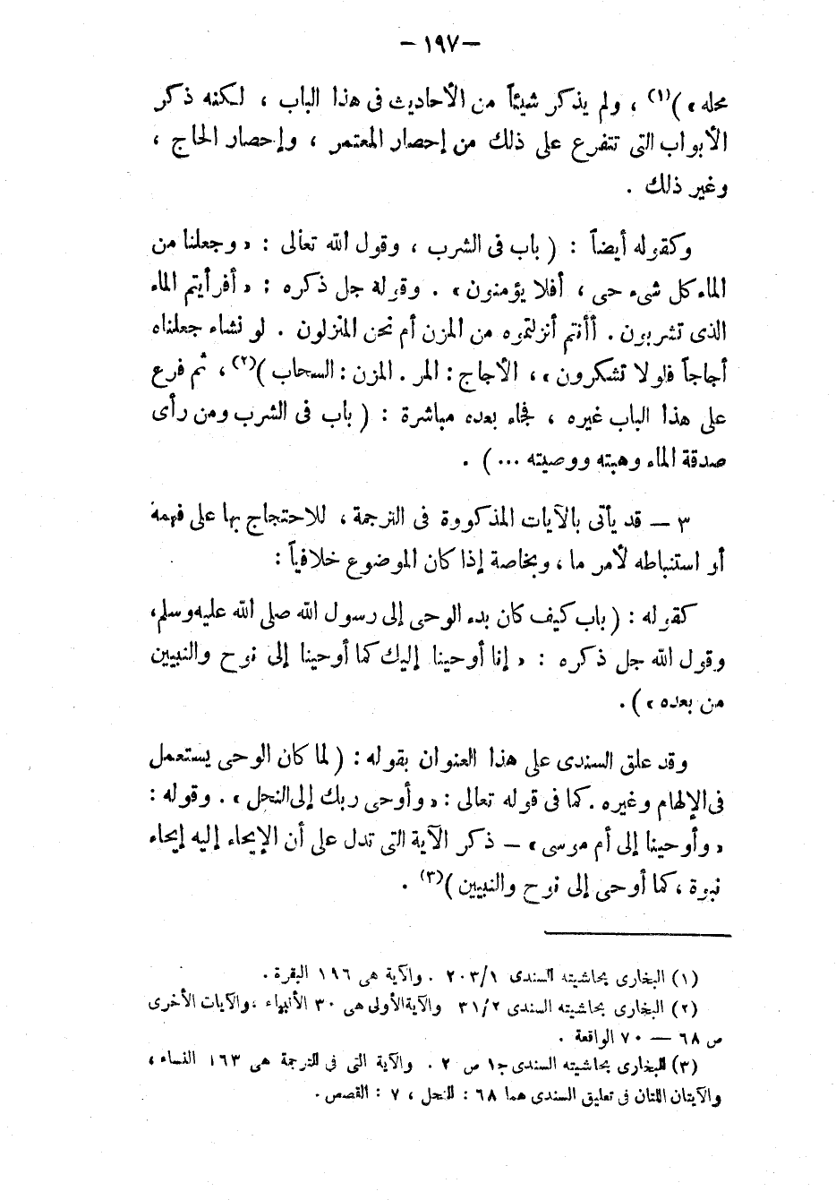 (¬3) " البخاري بحاشية السندي ": 1/ 3. والآية في الترجمة هي [سورة النساء، الآية: 3]، والآيتان اللتان في تعليق السندي هما [سورة النحل، الآية: 68]، [سورة القصص، الآية: 7].