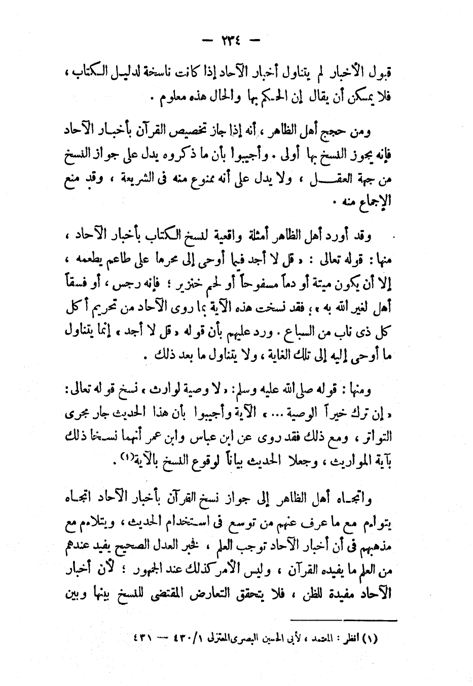 (¬1) انظر " المعتمد "، لأبي الحسن البصري المعتزلي: 1/ 430، 431.