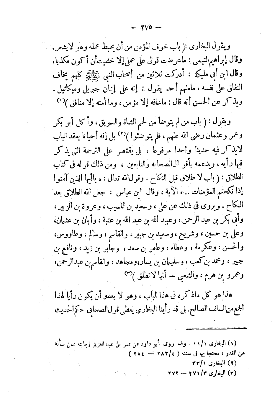 هذا هو كل ما ذكره في هذا الباب، وهو لا يعدو أن يكون رأيًا لهذا الجمع من السلف الصالح. بل قد رأينا البخاري يعطي قول الصحابي حكم الحديث