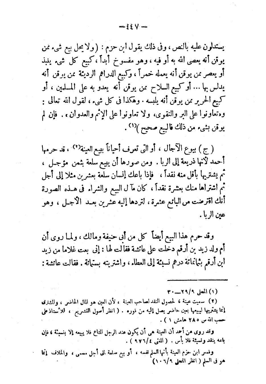 (¬2) سميت عينة، لحصول النقد لصاحب العنية، لأن العين هو المال الحاضر، والمشتري إنما يشتريها ليبيعها بعين الحاضر يصل إليه من فوره. (انظر " أصول التشريع "، للأستاذ علي حسب الله: ص 285 هامش 1).
