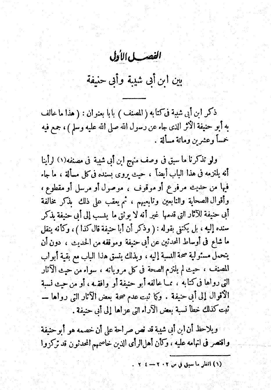 الفَصْلُ الأَوَّلُ: بَيْنَ ابْنِ أَبِي شَيْبَةَ وَأَبِي حَنِيفَةَ: