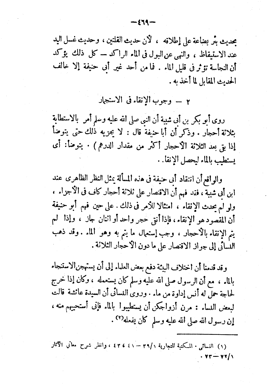 (¬1) " النسائي "، المكتبة التجارية: 1/ 39، 41، 43؛ وانظر " شرح معاني الآثار ": 1/ 72، 73.