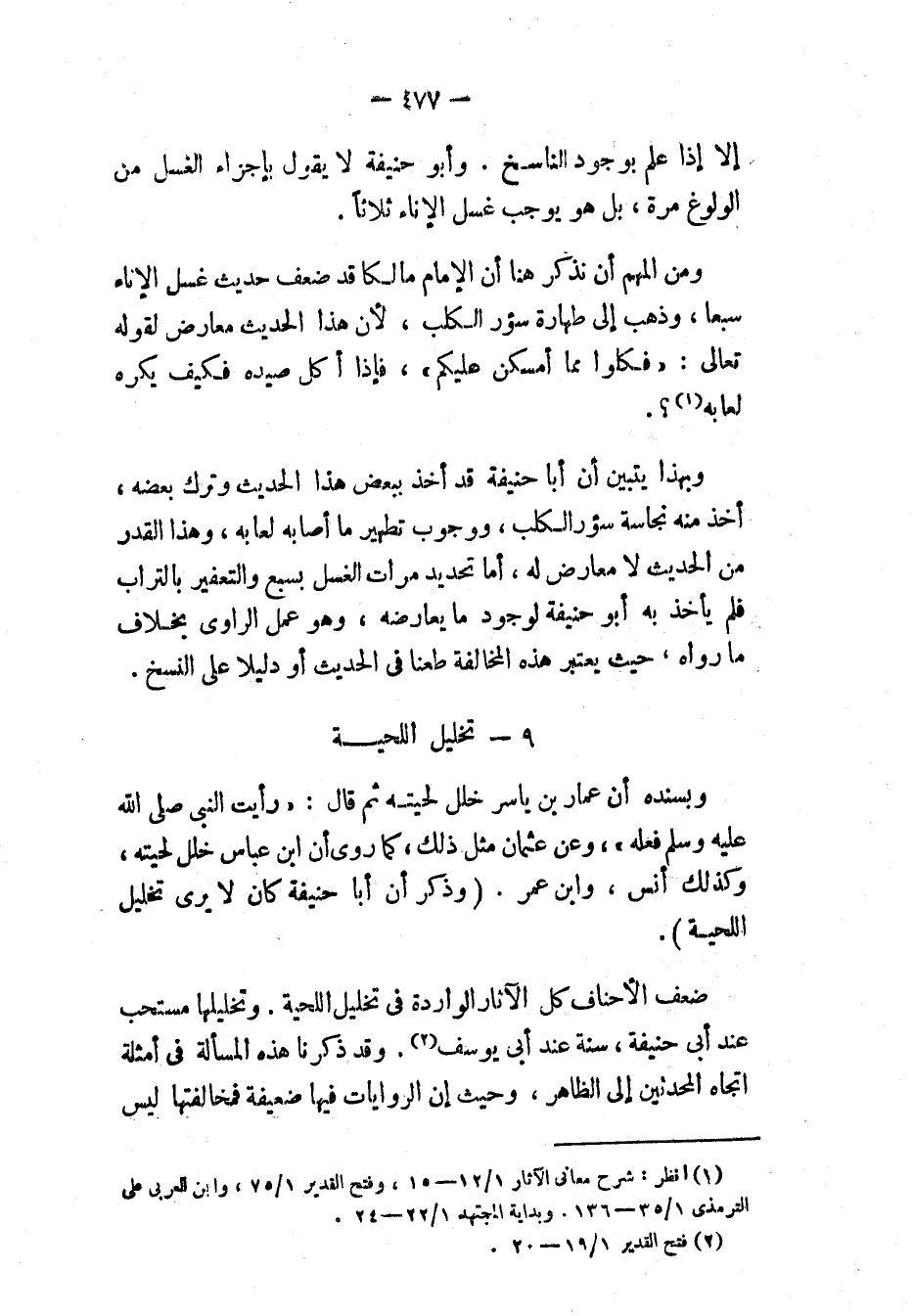 - «وَذُكِرَ أَنَّ أَبَا حَنِيفَةَ كَانَ لَا يَرَى تَخْلِيلَ اللِّحْيَةِ».