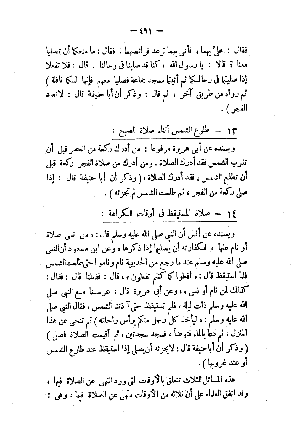 14 - صَلاَةُ المُسْتَيْقِظِ فِي أَوْقَاتِ الكَرَاهَةِ: