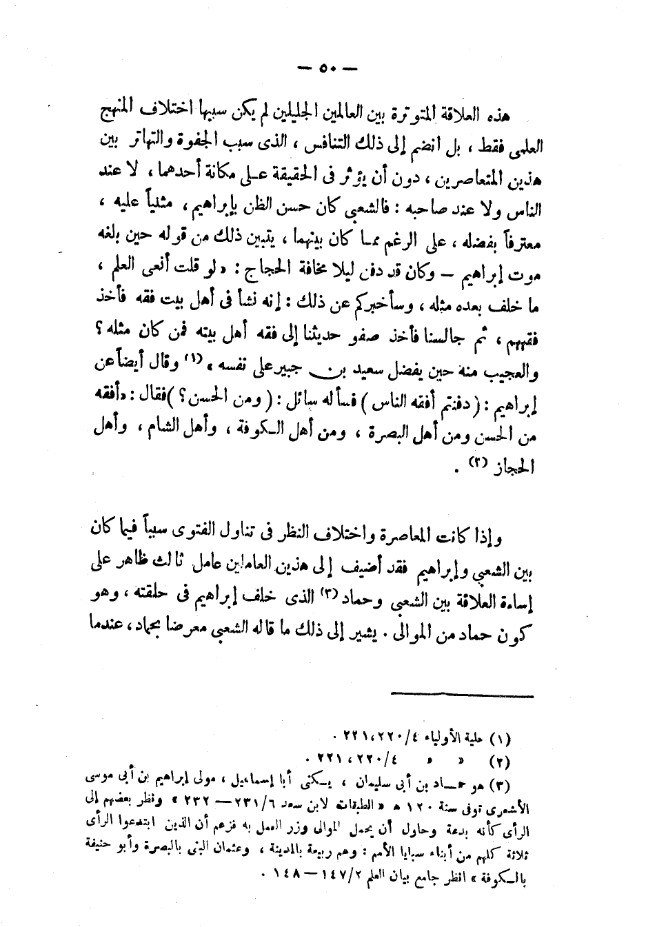 (¬3) هُوَ حَمَّادُ بْنُ أَبِي سُلَيْمَانَ، يُكَنَّى أبا إسماعيل، مولى إبراهيم بن أبي موسى الأشعري، توفي سنة 120 هـ (" الطبقات " لابن سعد: 6/ 231، 232). ونظر بعضهم إلى الرأي كأنه بدعة وحاول أَنْ يُحَمِّلَ المَوَالِي وِزْرَ العَمَلِ بِهِ فزعم أن الذين ابتدعوا الرأي ثلاثة كلهم من أبناء سبايا الأمم: وهم ربيعة بالمدينة، عُثْمَانُ [الْبَتِّيُّ] بالبصرة وأبو حنيفة بالكوفة. انظر " جامع بيان العلم ": 2/ 147، 148.