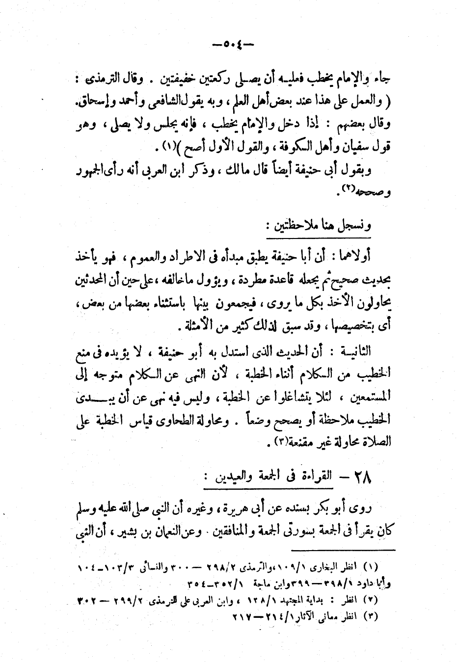 (¬1) انظر " البخاري ": 1/ 109؛ و" الترمذي ": 2/ 298، 300؛ و" النسائي ": 3/ 103، 104؛ و" أبا داود ": 1/ 398، 399؛ و" ابن ماجه ": 1/ 352، 354.