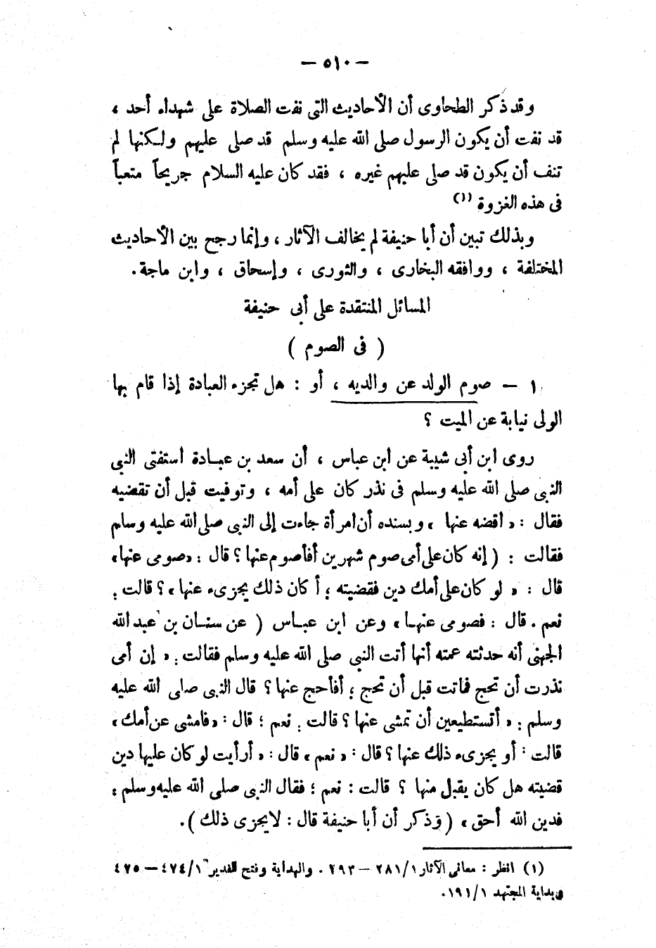 وقد ذكر الطحاوي أن الأحاديث التي نفت الصلاة على شهداء أحد، قد نفت أن يكون الرسول - صَلَّى اللهُ عَلَيْهِ وَسَلَّمَ - قد صلى عليهم ولكنها لم تنف أن يكون قد صلى عليهم غيره، فقد كان - عَلَيْهِ السَّلاَمُ - جَرِيحًا مُتْعَبًا في هذه الغزوة (¬1).