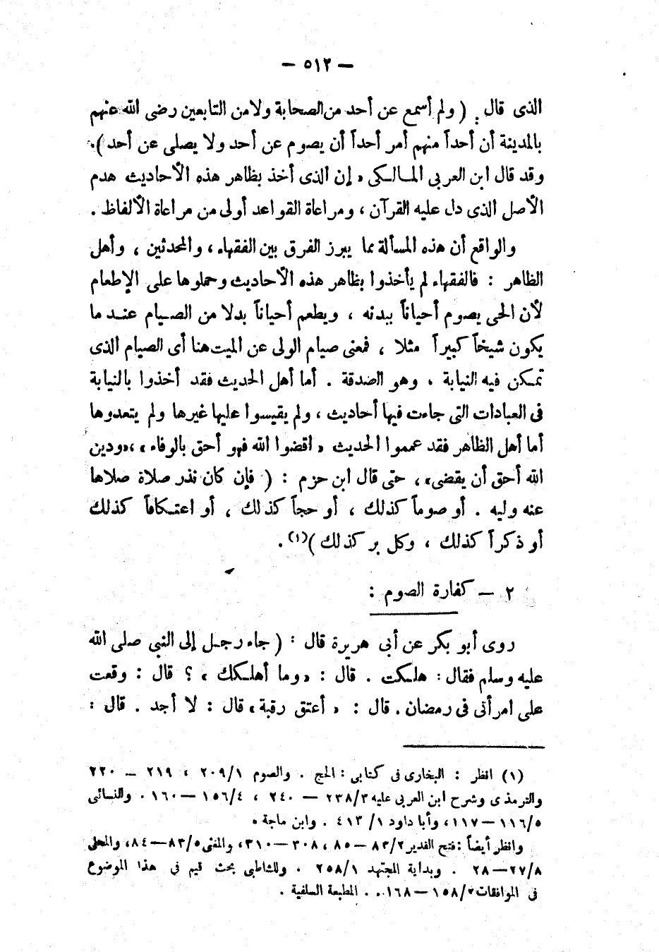 وانظر أيضًا " فتح القدير ": 2/ 83، 85، 308، 310؛ و" المغني ": 5/ 83، 84؛ و" المحلى ": 8/ 27، 28؛ و" بداية المجتهد ": 1/ 258. وللشاطبي بحث قيم في هذا الموضوع في " الموافقات ": 2/ 158، 168. المطبعة السلفية.