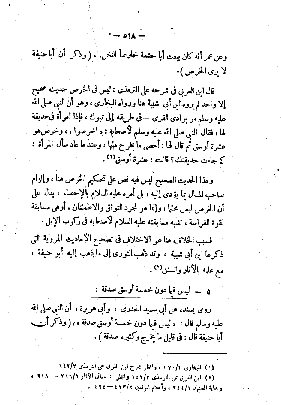 (¬2) " ابن العربي على الترمذي ": 3/ 142؛ وانظر " معاني الآثار ": 1/ 216، 218؛ و" بداية المجتهد ": 1/ 244؛ و" إعلام الموقعين ": 2/ 423، 424.