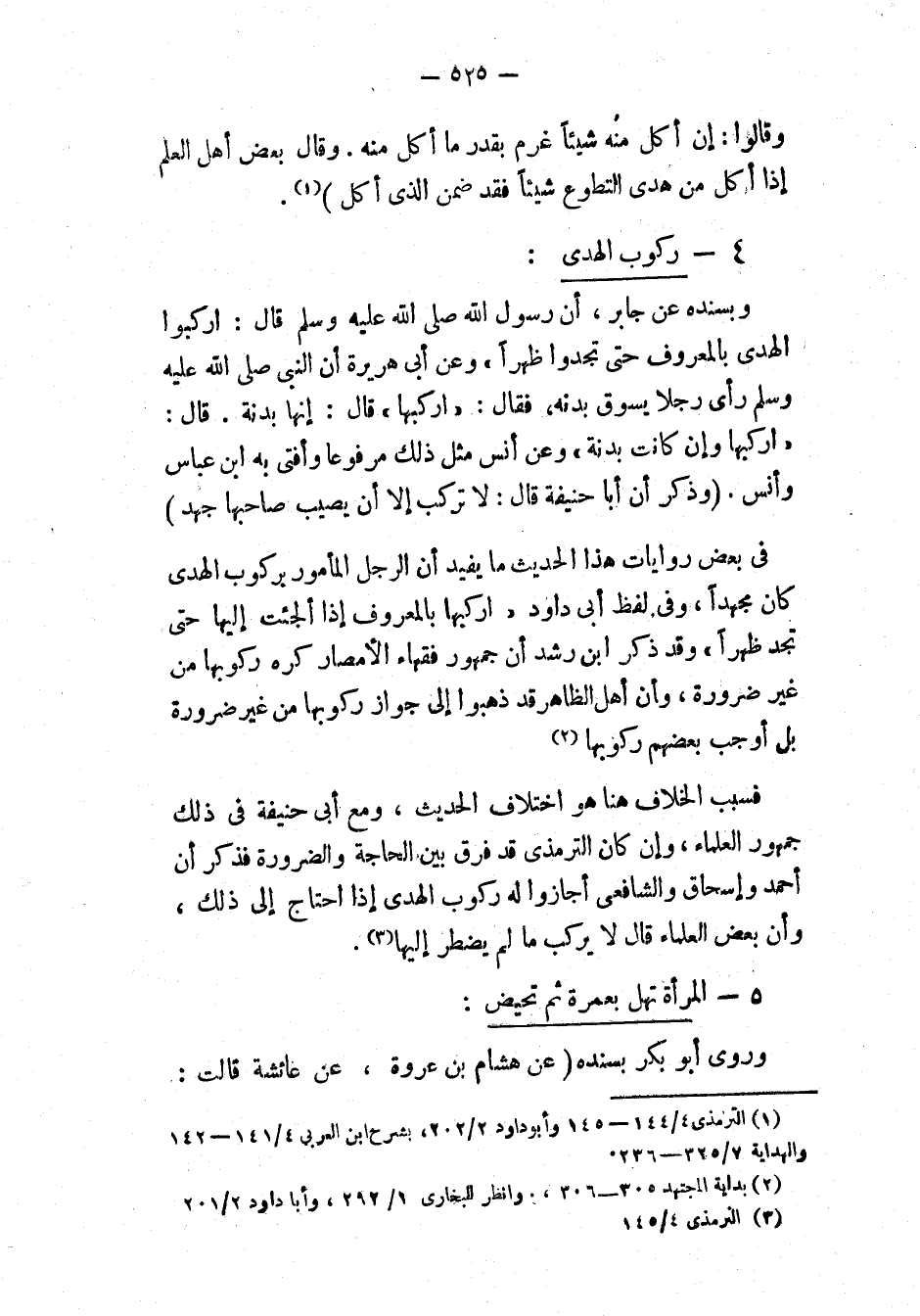 فسبب الخلاف هنا هو اختلاف الحديث، ومع أبي حنيفة في ذلك جمهور العلماء، وإن كان الترمذي قد فرق بين الحاجة والضرورة فذكر أن أحمد وإسحاق والشافعي أجازوا له ركوب الهدي إذا احتاج إلى ذلك، وأن بعض العلماء قال: " لَا يَرْكَبُ مَا لَمْ يُضْطَرَّ إِلَيْهَا " (¬3).