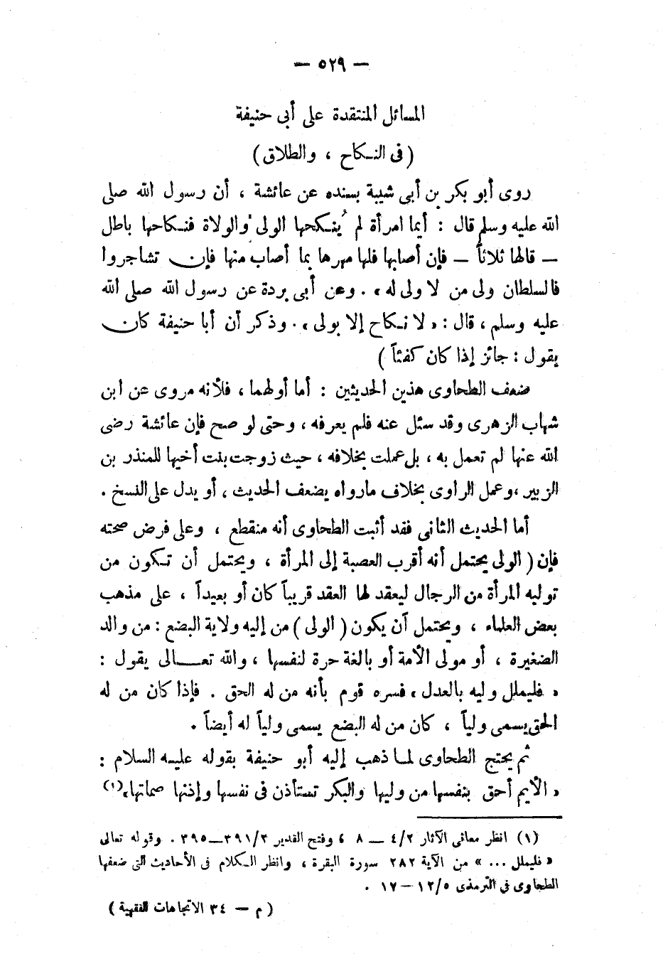 (¬1) انظر " معاني الآثار ": 2/ 4، 8؛ و" فتح القدير ": 2/ 391، 395. وقوله تعالى: {فَلْيُمْلِلْ ...} من الآية 282 سورة البقرة، وانظر الكلام في الأحاديث التي ضعفها الطحاوي في " الترمذي ": 5/ 12، 17.