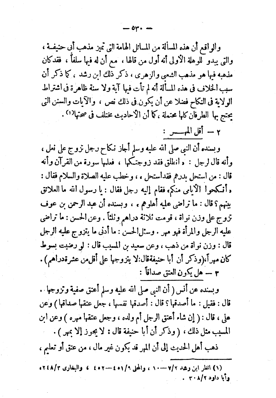 (¬1) انظر " ابن رشد ": 2/ 7، 10؛ و" المحلى ": 9/ 451، 452؛ و" البخاري ": 3/ 248؛ و" أبا داود ": 2/ 308.