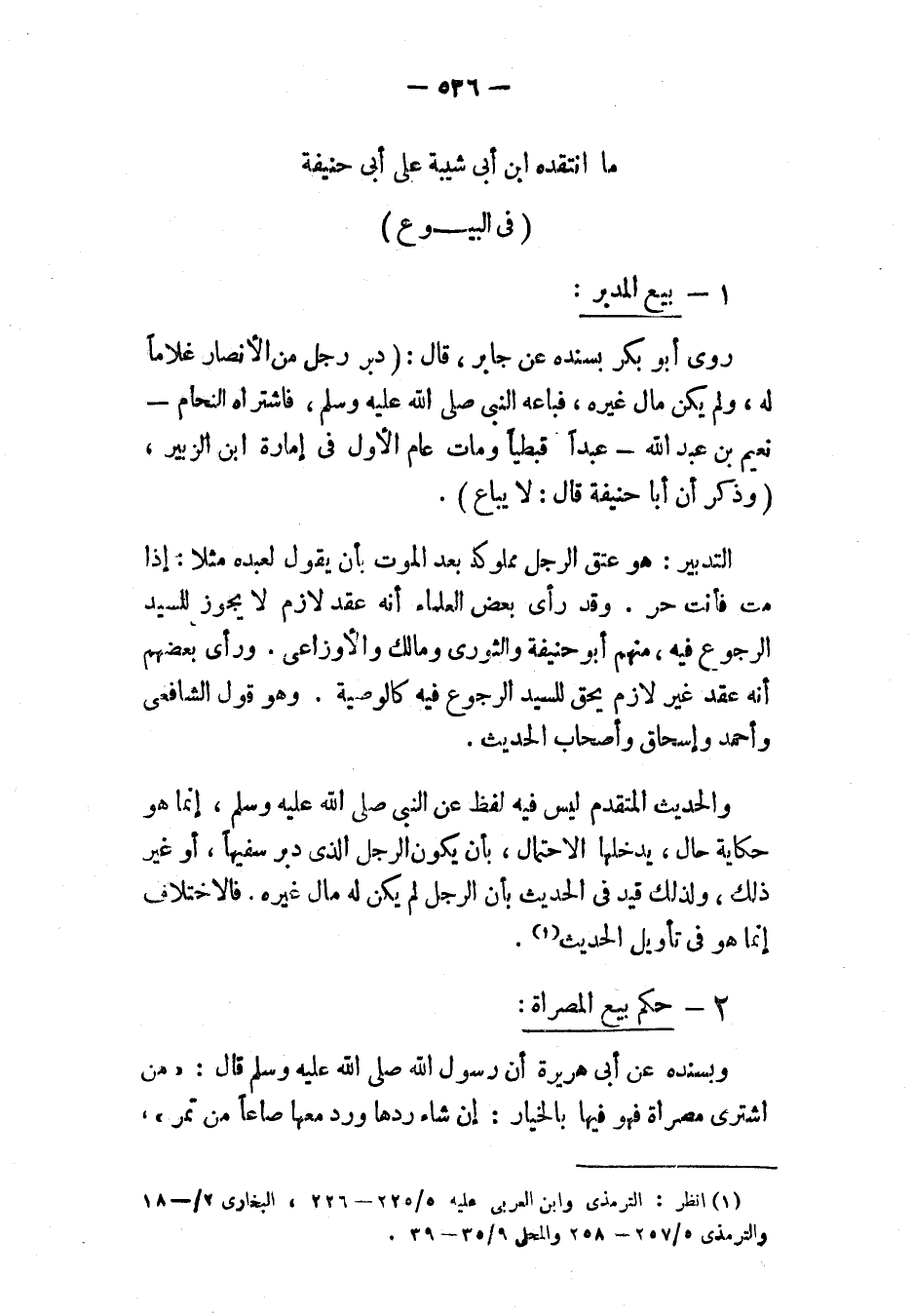 مَا انْتَقَدَهُ ابْنُ أَبِي شَيْبَةَ عَلَى أَبِي حَنِيفَةَ فِي البُيُوعِ: