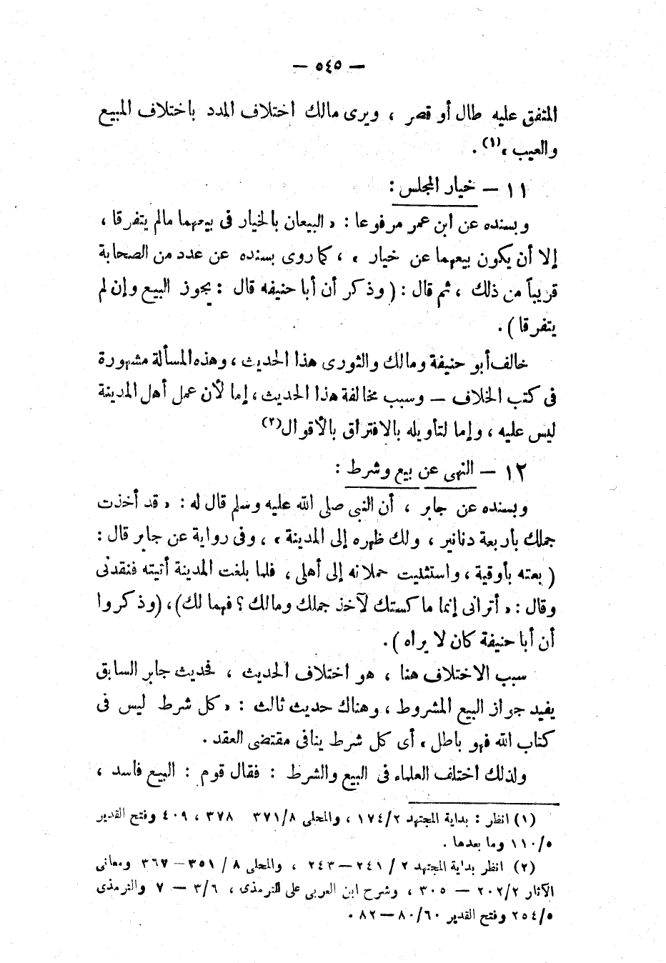 (¬1) انظر " بداية المجتهد ": 2/ 174؛ و" المحلى ": 8/ 371، 378، 409؛ و" فتح القدير ": 5/ 110 وما بعدها.