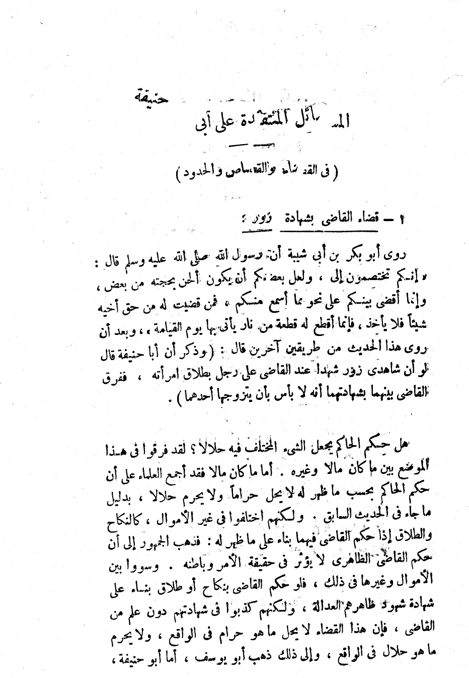 المَسَائِلُ المُنْتَقَدَةُ عَلَى أَبِي حَنِيفَةَ فِي القَضَاءِ وَالقَصَاصِ وَالحُدُودِ:
