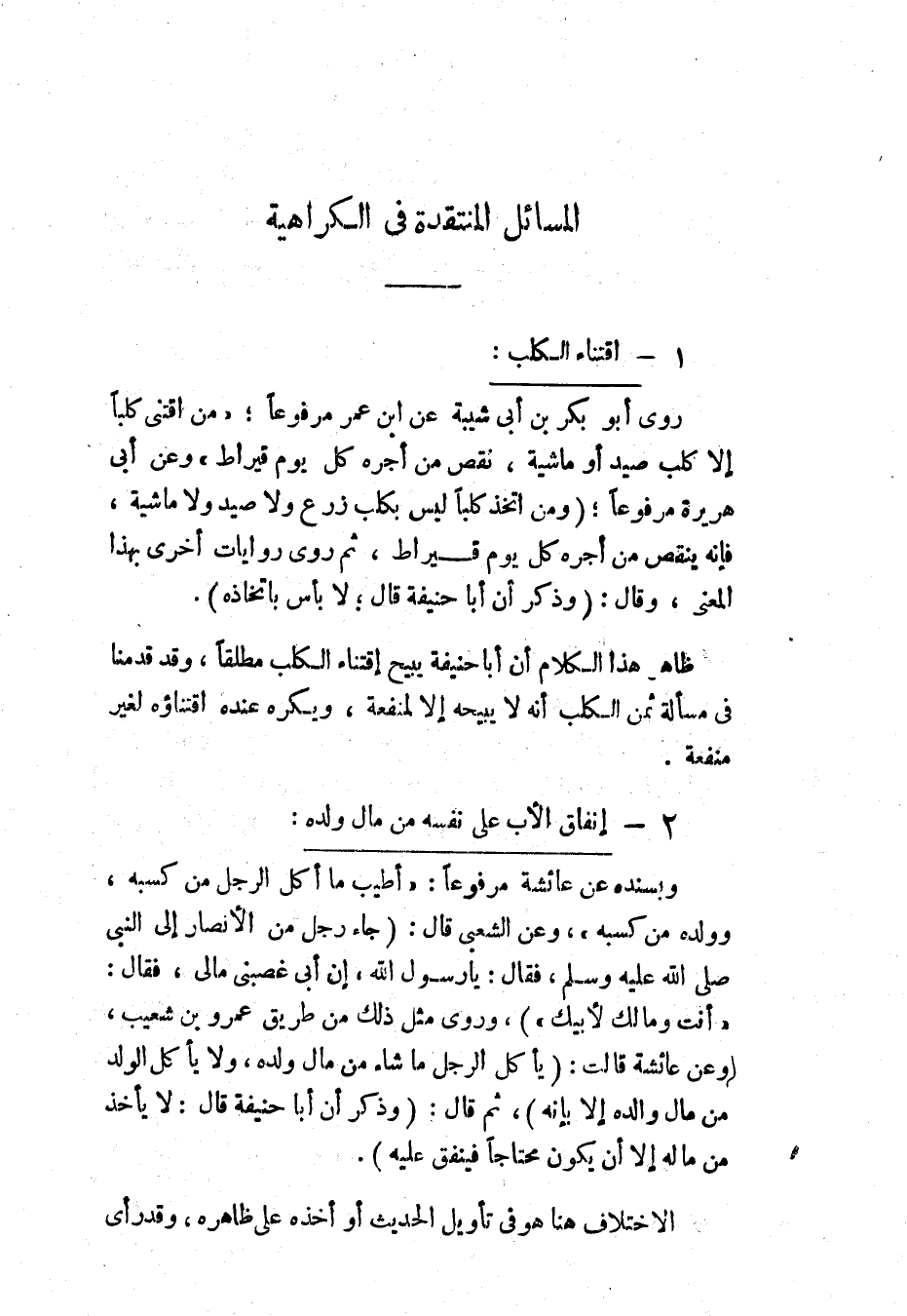 ظاهر هذا الكلام أن أبا حنيفة يبيح اقتناء الكلب مطلقًا، وقد قدمنا في مسألة ثمن الكلب أنه لا يبيحه إلا لمنفعة، ويكره عنده اقتناؤه لغير منفعة.