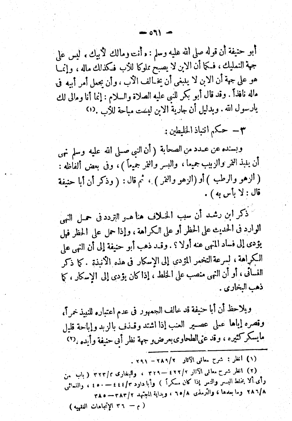 (¬2) انظر: " شرح معاني الآثار ": 2/ 329، 422؛ و" البخاري ": 3/ 323 (بَابُ مَنْ رَأَى أَنْ لاَ يَخْلِطَ البُسْرَ وَالتَّمْرَ إِذَا كَانَ مُسْكِرًا، وَأَنْ لاَ يَجْعَلَ إِدَامَيْنِ فِي إِدَامٍ)؛ و" أبا داود ": 3/ 444، 450؛ و" النسائي ": 8/ 286 وما بعدها؛ و" الترمذي ": 8/ 65؛ و" بداية المجتهد ": 2/ 383، 385.