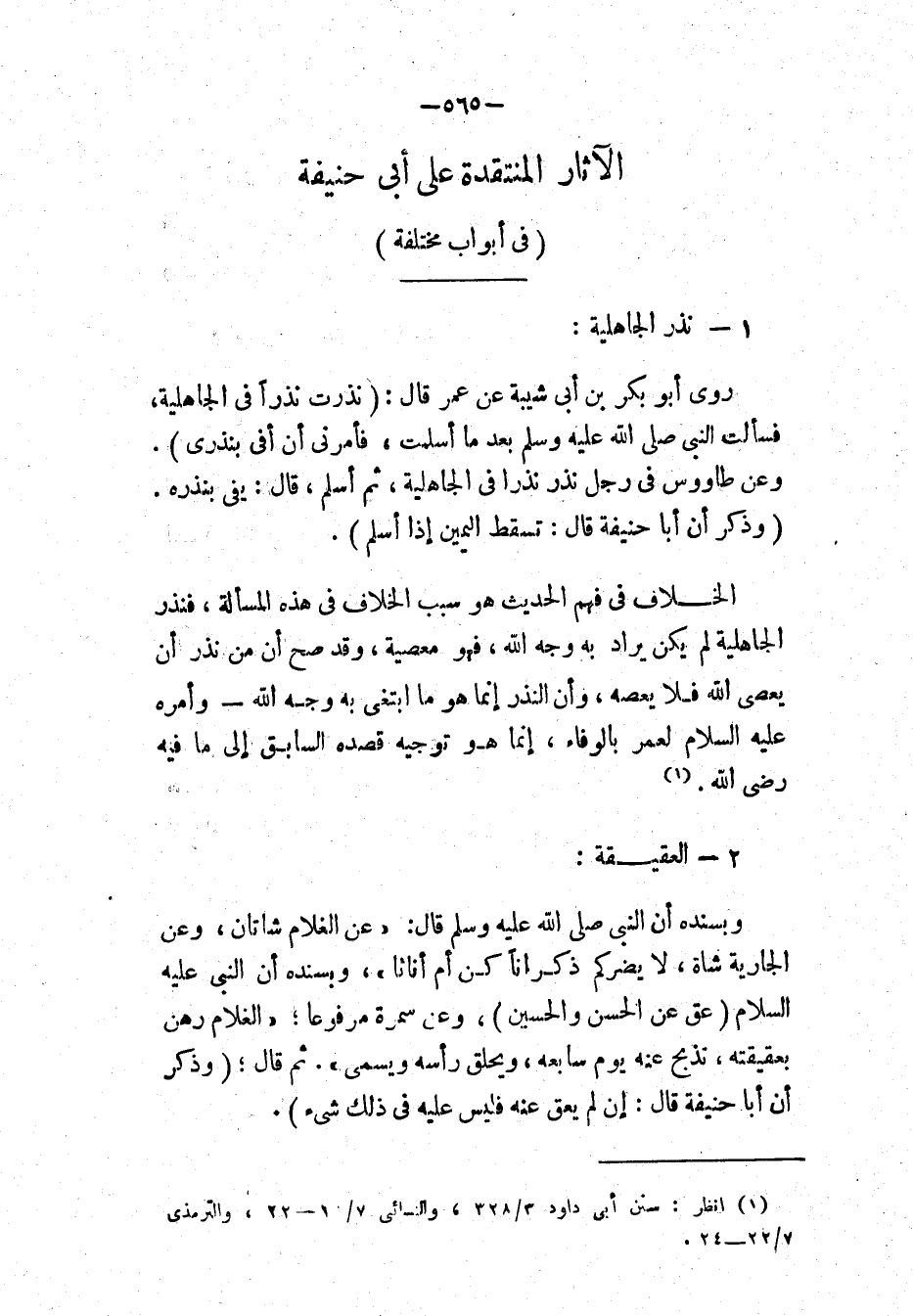 الآثَارُ المُنْتَقَدَةُ عَلَى أَبِي حَنِيفَةَ فِي أَبْوَابٍ مُخْتَلِفَةٍ: