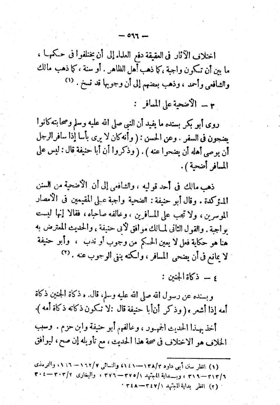 (¬1) انظر " سنن أبي داود ": 3/ 138، 141؛ و" النسائي ": 7/ 162، 166؛ و" الترمذي ": 6/ 313، 319؛ و" بداية المجتهد ": 1/ 375، 376؛ و" البخاري ": 2/ 303، 304.