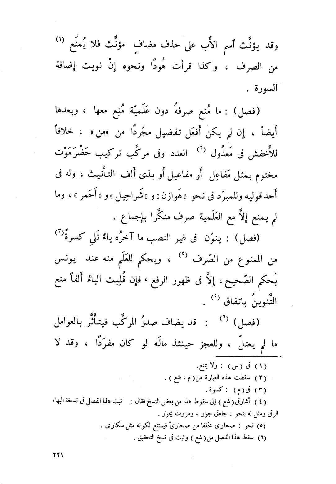 وقد يؤنث اسم الاب على حذف مضاف مؤنث، فلا يمنع من الصرف، وكذا قرأت هودا ونحوه ان نويت اضافة السورة.