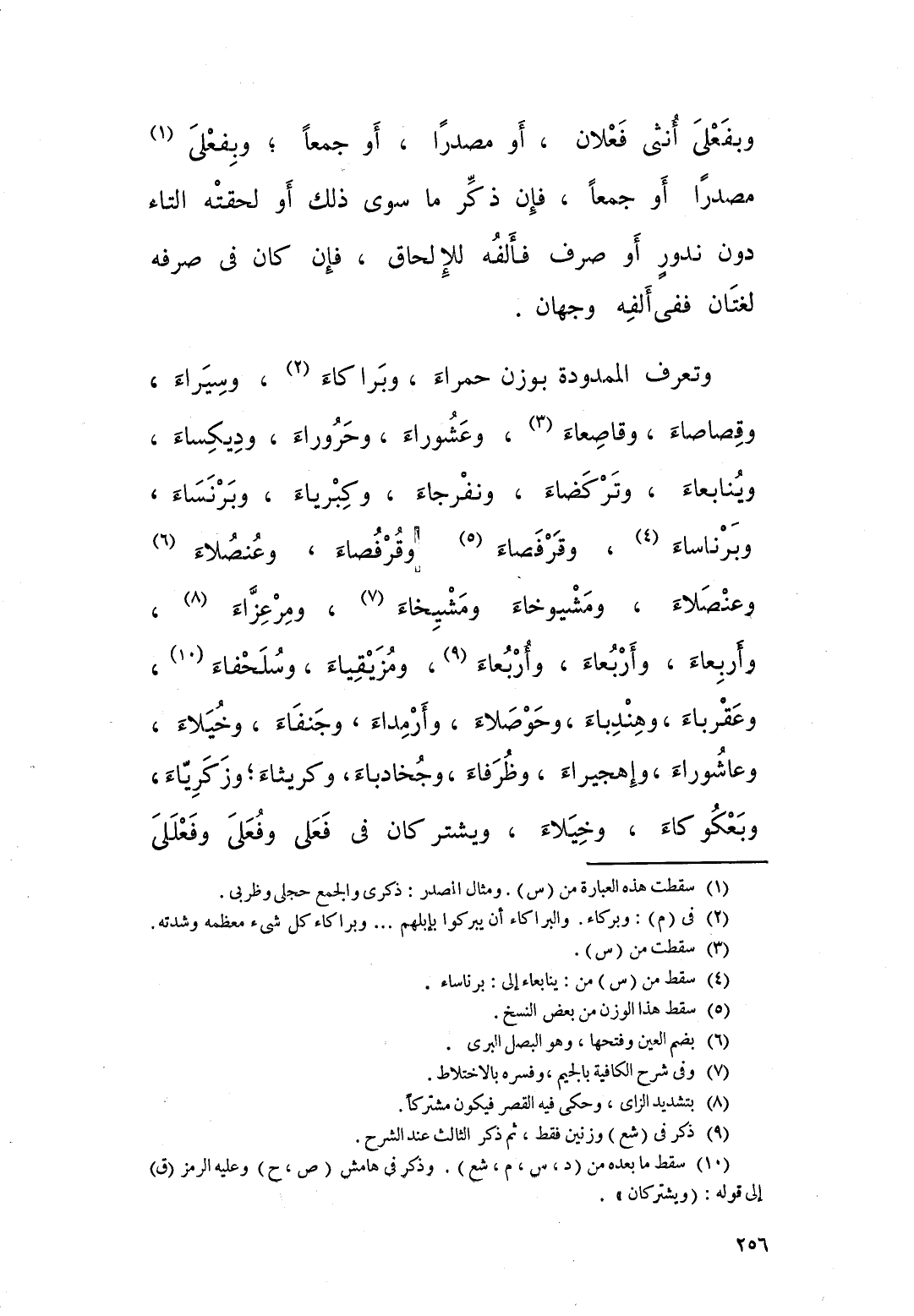 وبفعلا انثى فعلان، او مصدرا او مصدرا او جمعا، وبفعلى مصدر او جمعا فإن ذكر ما سوى ذلك او لحقته التاء دون ندور او صرفه فألفه للالحاق؛ فإن كان في صرف لغتان ففي الفه وجهان.