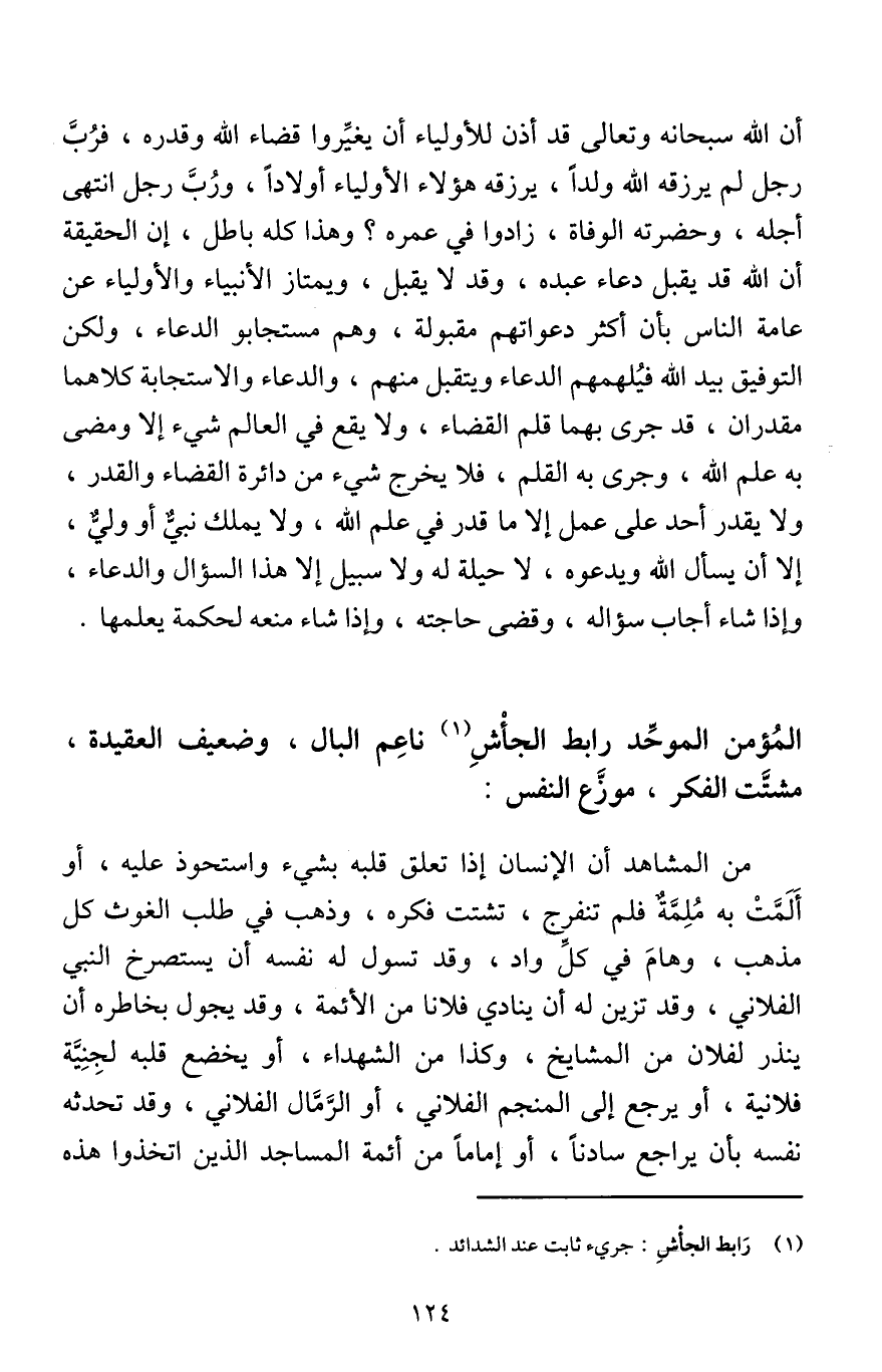 المؤمن الموحد رابط الجأش ناعم البال، وضعيف العقيدة مشتت الفكر موزع النفس: