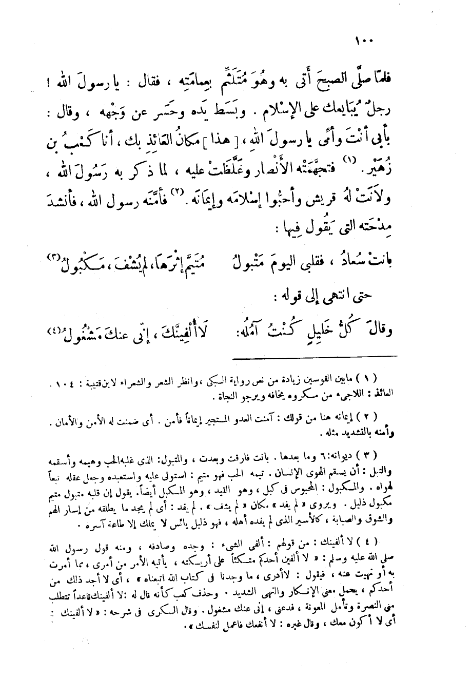 (بَانَتْ سعاد فقلبى الْيَوْم متبول ... متيم إثْرهَا لم يشف مكبول)