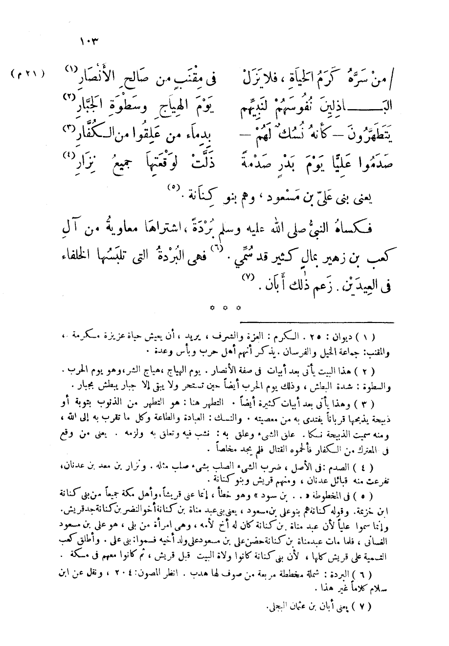 (من سره كرم الْحَيَاة فَلَا يزل ... فى مقنب من صَالح الْأَنْصَار)
