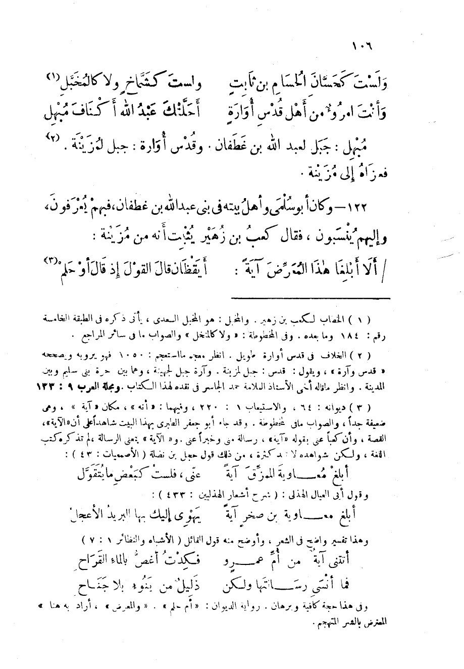122 - وَكَانَ أَبُو سلمى وَأهل بَيته فى بنى عبد الله بن غطفان فبهم يعْرفُونَ وإليهم ينسبون فَقَالَ كَعْب بن زُهَيْر يثبت أَنه من مزينة